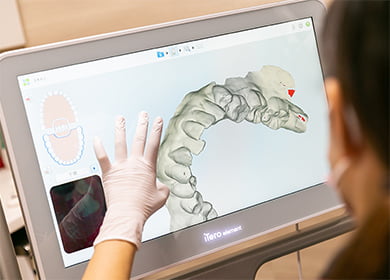 治療を希望される場合には、精密な検査を行います。口腔内写真をお撮りし、お口の中を高性能スキャナーで読み取ります。従来のような型採りは必要ありません。また、歯周病の状態などについても確認を行い、インビザライン治療が可能かどうかを判断します。