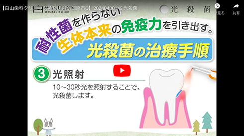 白山歯科クリニックでは、患者様への丁寧な説明を心掛けています。お口の中は歯科医師のものでも歯科衛生士のものでもなく、患者様ご自身のものです。その状況をしっかりとご説明し把握していただくことで、自覚を持ってセルフケアに励んでいただけると思います。どのような弱点があって、どこに気を付けて歯磨きをするのかを、分かりやすく解説します。